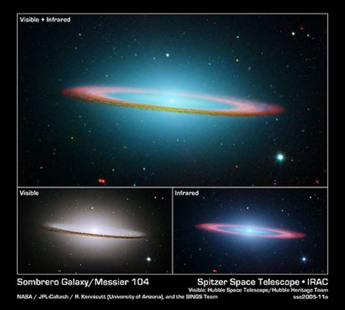 photo combine en fait une photo en Infra Rouge de Spitzer avec une photo dans