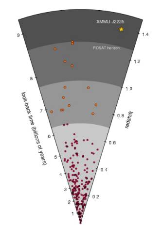 tel amas organisé à une période où l'Univers était si jeune est une grande