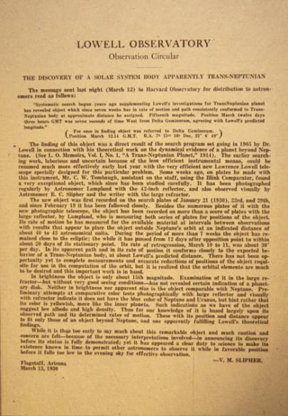 Observatory archives), découvrit à l'Observatoire Lowell (Flagstaff