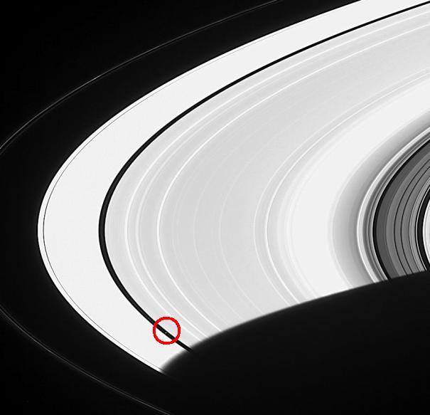 l'anneau de Jupiter et Amalthée dans son prolongement.