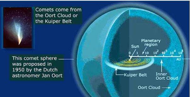 quelques dizaines de km autour du noyau (petit : 2km) de la comète.
