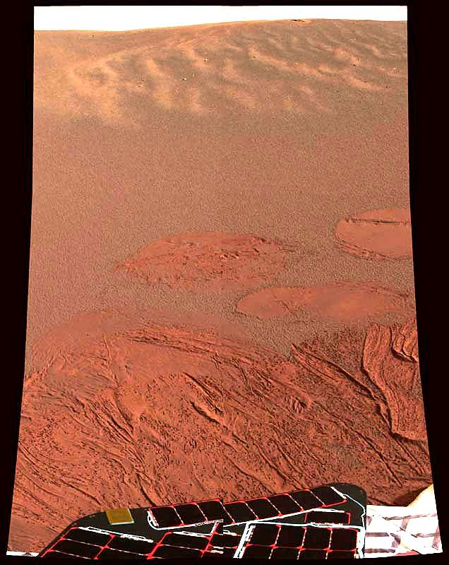 LE PAYSAGE EST TRES DIFFÉRENT DU SITE DE SPIRIT (ET DES AUTRES SONDES MARTIENNES)