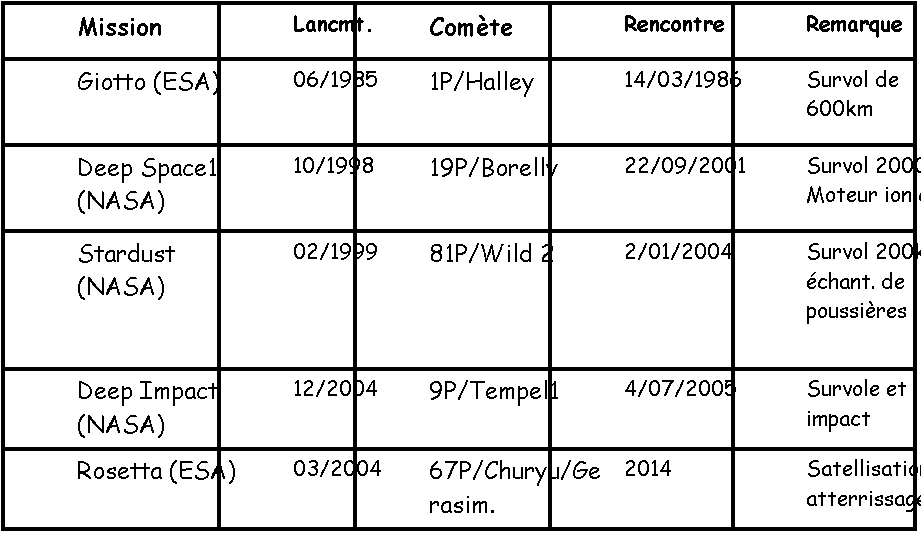 rencontre brutale avec la comète Tempel 1 le 4 Juillet 2005.