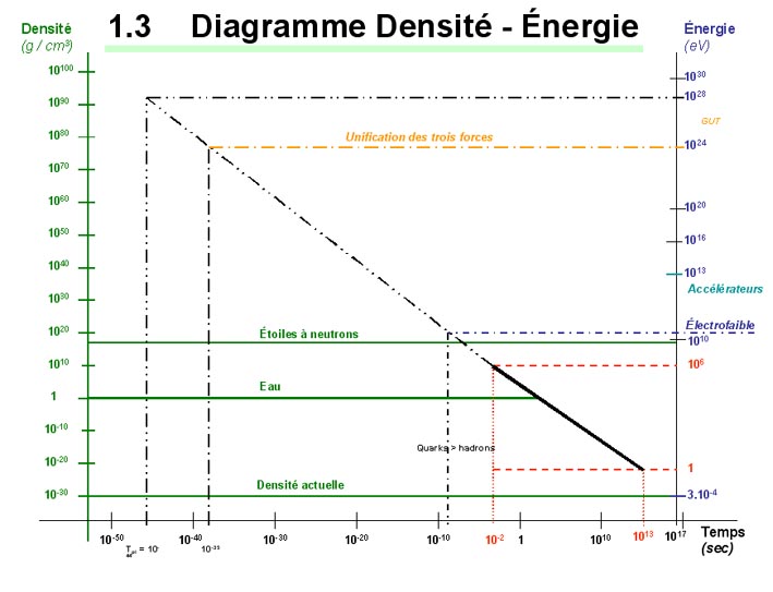 préparé un diagramme représentant l'évolution densité-énergie depuis le BB