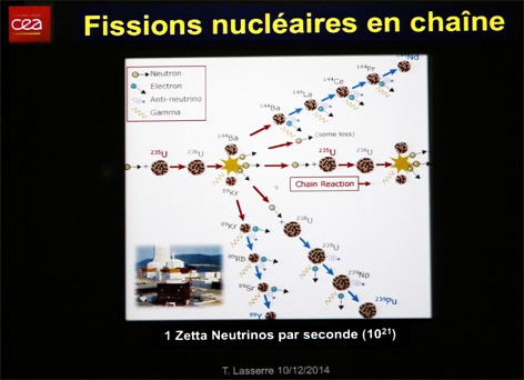 Les fissions nucléaires en chaîne produisent en moyenne 1021 neutrinos (en fait des antineutrinos) par seconde !