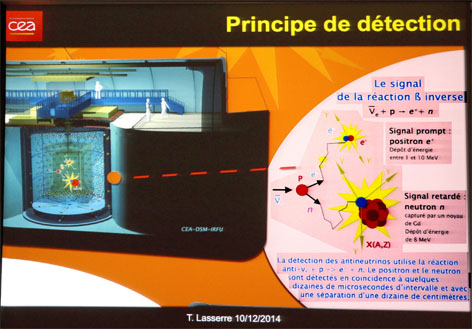 Un neutrino sur 10.000 milliards est intercepté par la Terre, il faut donc un débit énorme de neutrinos si on veut en détecter quelques uns, alors où les trouver ?? Près d’une centrale nucléaire bien sûr !