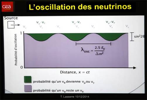 Il y a une oscillation périodique des neutrinos, de longueur d’onde :