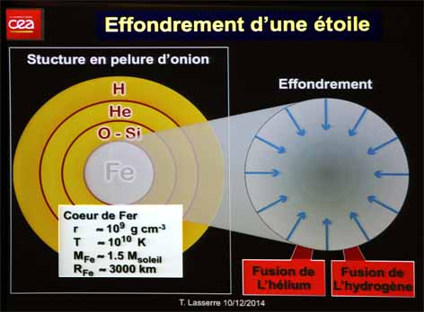 Les neutrinos sont produits car la densité est telle que les protons et les électrons se combinent pour former des neutrons et cela produit des neutrinos (et anti neutrinos).