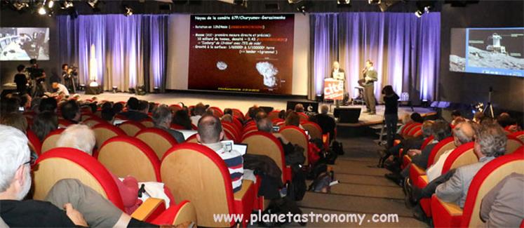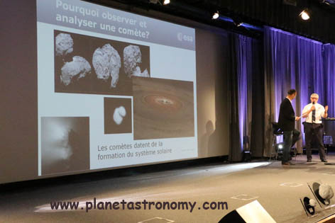 La SAF, Universcience, le CNES et l’ESA ont invité le public (parisien surtout) à suivre en direct l’atterrissage de la sonde européenne Philae (se détachant de l’orbiteur Rosetta) sur le noyau de la comète 67P.
