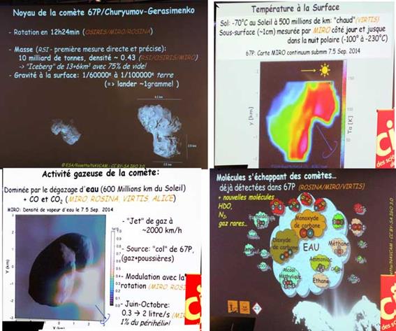 Il nous parle de cette fameuse comète 67P Churyumov Gerasinenko sur laquelle notre robot va se poser et nous donne des informations que j’ai résumées sur cette image.