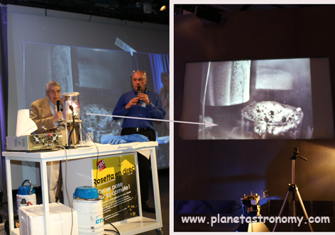 Clou de la soirée, la fabrication d’une comète et de son activité en direct.