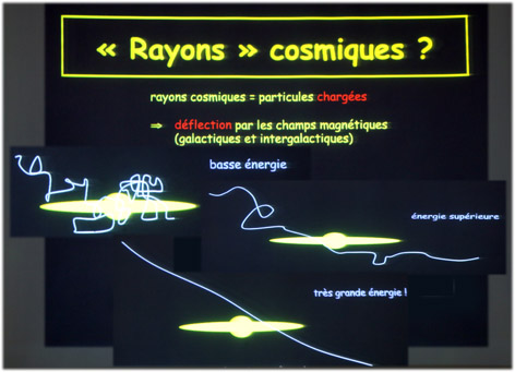 On ne peut donc pas arriver à connaitre leur provenance facilement, sauf si l’énergie est très grande, car dans ce cas les déviations extérieures sont faibles, comme on le voit sur cette diapo résumant le phénomène.