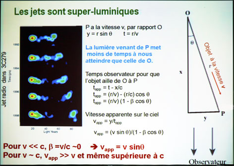 Il arrive même que l’on observe des vitesses superluminiques apparentes dans certains jets de quasars.