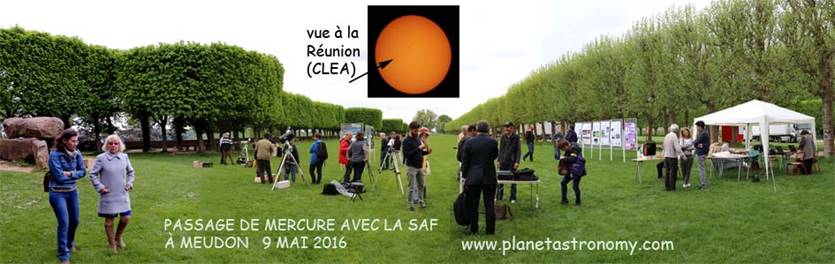 Ce 9 Mai 2016, la SAF et L’Observatoire de Paris-Meudon nous convient à assister au transit de Mercure devant le Soleil, phénomène relativement rare se produisant une douzaine de fois par siècle. Le temps n’est pas de la partie !!