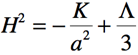 Le taux de croissance du facteur d’échelle, ou paramètre de Hubble H, est donné (application de la première équation de Friedmann) par :