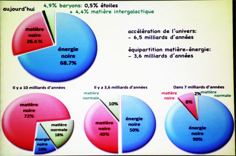 Par exemple il y a 3,6 milliards la proportion entre matière et énergie noire était de 50-50.