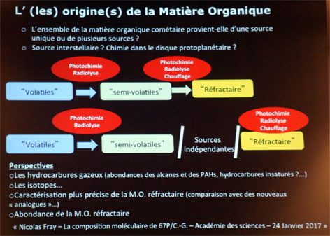 On a trouvé aussi de la matière organique (hydrocarbure saturé) à la surface du noyau grâce à VIRTIS et COSAC.