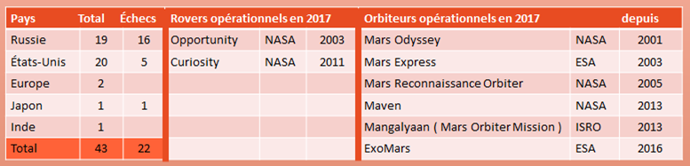 ses missions martiennes. Mais les États-Unis ont connu 5 échecs sur des missions