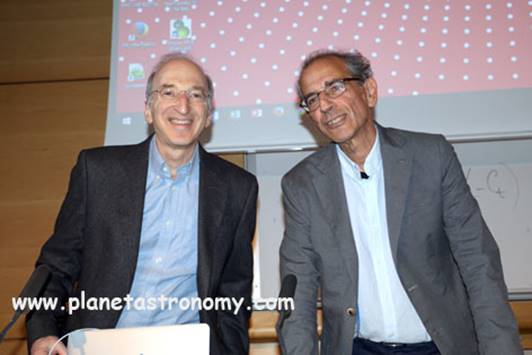 Le professeur Stavros Katsanevas (à droite sur la photo), Directeur de l’APC (Laboratoire Astroparticules et Cosmologie) nous propose cette conférence exceptionnelle de S Perlmutter (à gauche sur la photo) lors de sa venue à Paris pour la remise de son grade de Dr Honoris Causa.