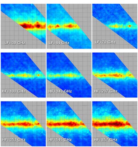 dans les fréquences de HFI (100GHz) et LFI (70GHz) les moins sensibles aux