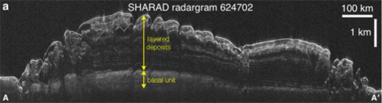 zone supérieure de dépôt de glace est très réflective au radar. D'après