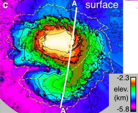 (-2,3km) au violet (-5,8km). Ces altitudes sont négatives par rapport au