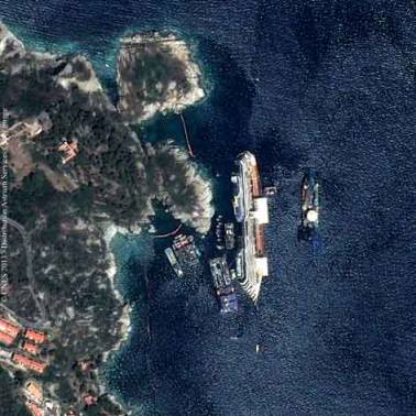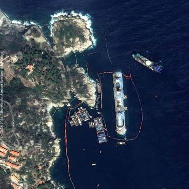 redressement du Costa Concordia vu de satellite. (05/10/2013)