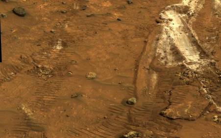 donc je ne la mets pas) très clairement les traces des roues du rover.
