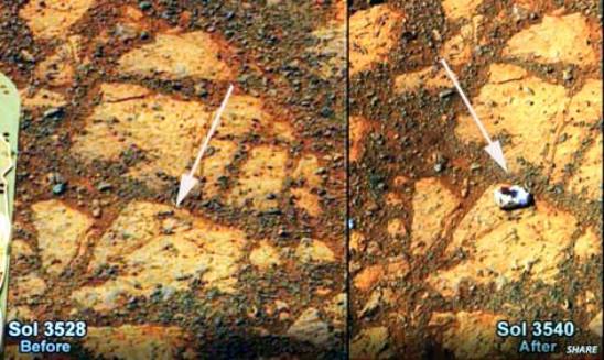 dernière découverte d’Opportunity : une roche qui n’était pas là