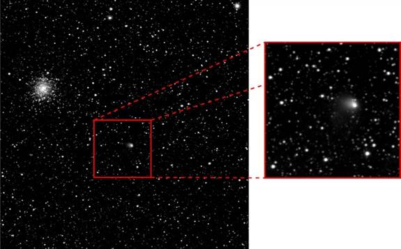 Même si elle se trouve encore à plus de 600 millions de kilomètres du Soleil - plus de quatre fois la distance entre la Terre et le Soleil – sa surface a déjà commencé à se réchauffer, ce qui sublime la glace de surface et fait s’échapper le gaz de son noyau formé de roches et de glace. Lorsque le gaz s’échappe, il emmène avec lui dans l’espace un nuage de minuscules particules de poussière, qui s’étirent lentement pour former la chevelure.