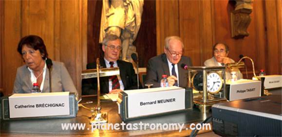 Le comité d’honneur : de gauche à droite : Catherine Bréchignac ; Bernard Meunier ; Philippe Taquet ; Michel Davier.