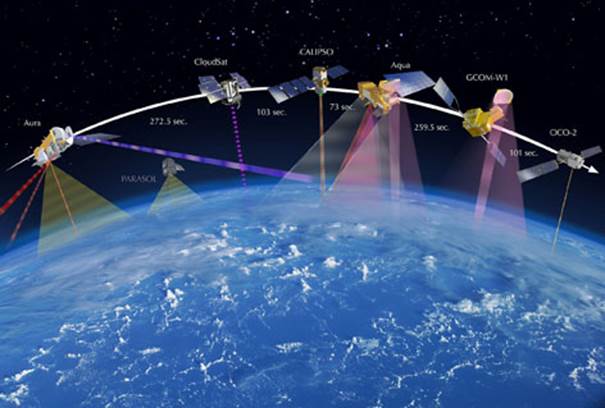 Ces 5 satellites sont : Aura (NASA) ; CloudSat (NASA) ; CALIPSO (CNES/NASA) ; Aqua (NASA) ; GCOM-W1 (JAXA).