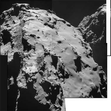 À défaut d’images d’Osiris qui semblent véritablement souffrir d’un embargo, voici les dernières images de la Navcam de Rosetta prises le 28 Octobre 2014 de moins de 8000m de la surface de la comète.
