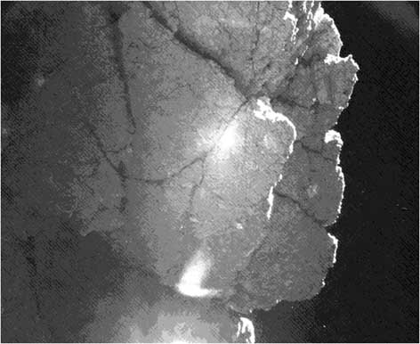On voit parfaitement la zone du cou de la comète avec les rochers déposés au centre.