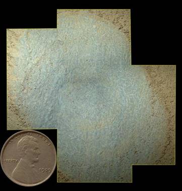 Une dernière preuve que l’on est bien dans un lac : une photo prise avec la caméra MAHLI (microsocope) d’une roche dans les Parhump hills.