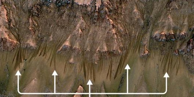 Ces découvertes ont été faites sur les (fortes) pentes de Mars, elles apparaissent sous la forme de longues coulées noires. Et cela uniquement lorsque les conditions sont favorables, c’est-à-dire que qu’uniquement quand la température est au dessus de -23°C.