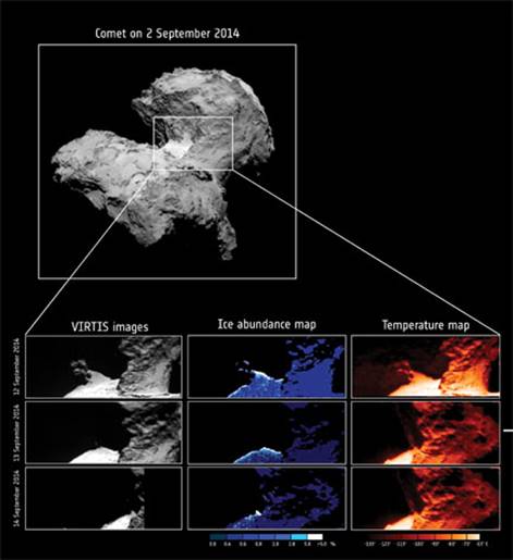 Rosetta :.Cycle de la glace d’eau observé par Rosetta. (10/10/2015)