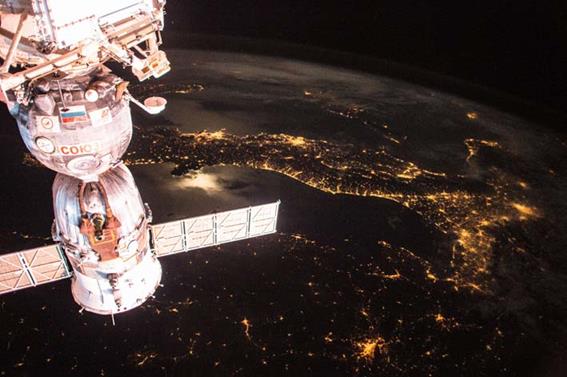 Voici l’arrivée de la capsule Soyuz TMA-15M avec 3 cosmonautes à bord (Terry Virts, Anton Shkaplerov et Samantha Cristoforetti) en Mai 2015. On voit en arrière plan l’Italie, patrie de Samantha.