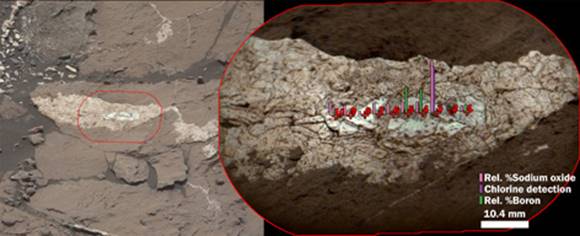 Du bore a aussi été détecté dans les veines de sulfate de Calcium par ChemCam.