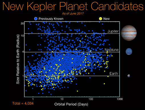 Illustration : les 4034 planètes candidates annoncées en juin 2017. 2335 sont confirmées comme planètes réelles.