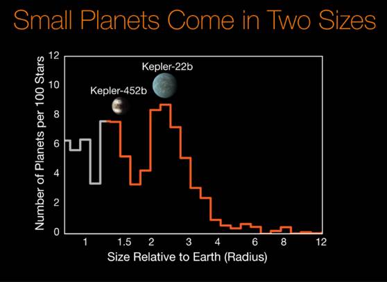On remarque un fait très intéressant parmi les planètes de taille terrestre détectées : il semblerait qu’il existerait deux classes différentes de ces exoplanètes :