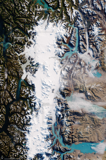 Le satellite Landast est passé en 2016 au dessus de la Patagonie et nous a fourni de nombreuses images très nettes et très détaillées de cette région.
