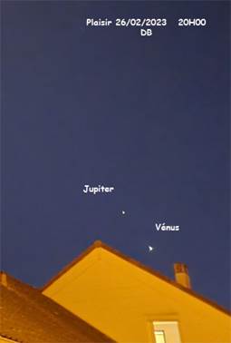 PHOTOS D’AMATEURS : LA CONJONCTION JUPITER/VENUS DE FEV 2023.