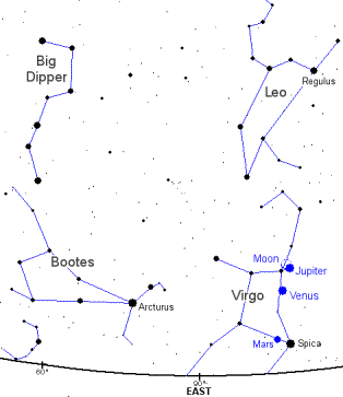 ces deux points lumineux qui se touchent presque, c'est Jupiter et Vénus (le