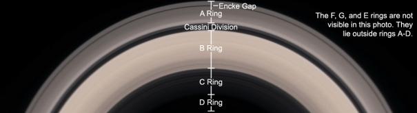 la partie fine des anneaux et dans les divisions de Cassini et de Encke.