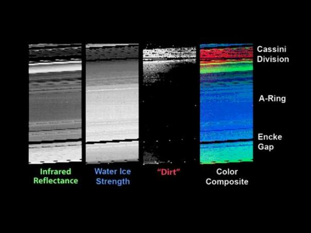montrant la concentration de glace d'eau dans les anneaux qui culmine dans