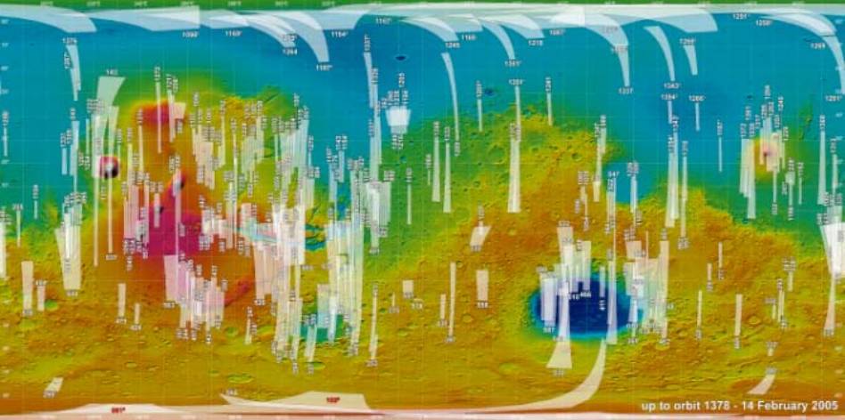 données de Mars Express par l'Université de Nantes, labo de Planétologie.