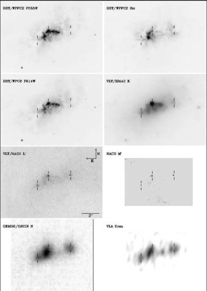 alpha; Hubble à 814nm; au VLT bande K; au VLT avec l'instrument NAOS bande L';