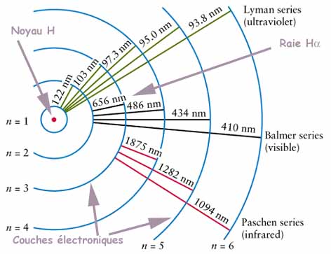 l'appelle la série de Balmer) se produisent dans le domaine visible (656 nm :