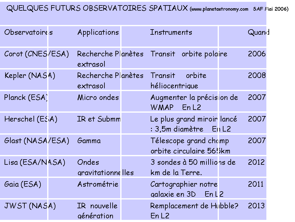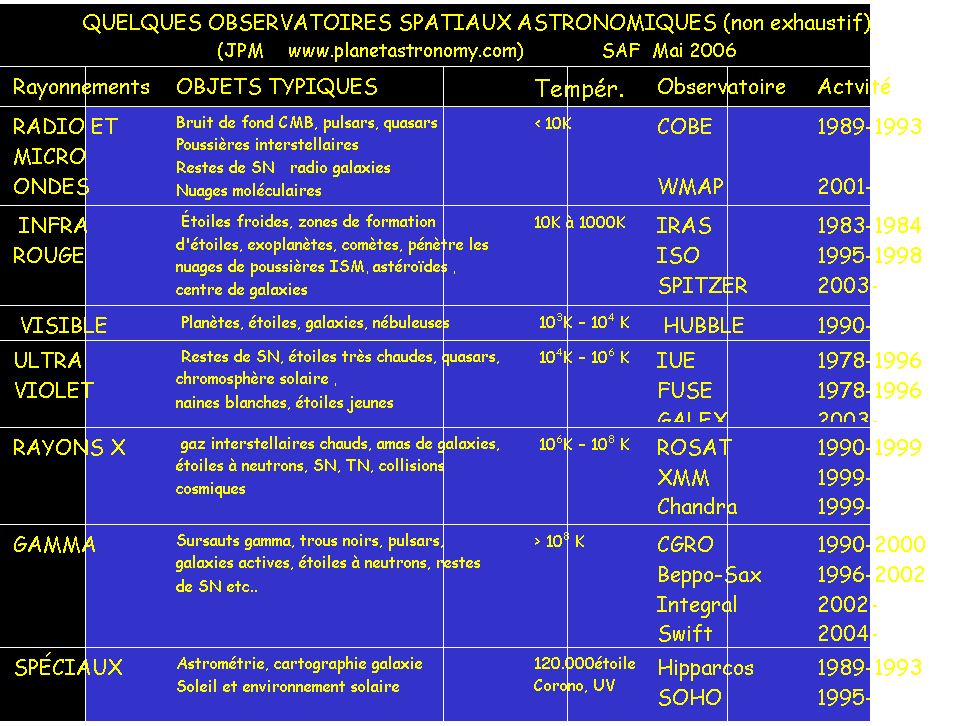 EXHAUSTIF DE QUELQUES OBSERVATOIRES SPATIAUX IMPORTANTS (état Mai 2006).
